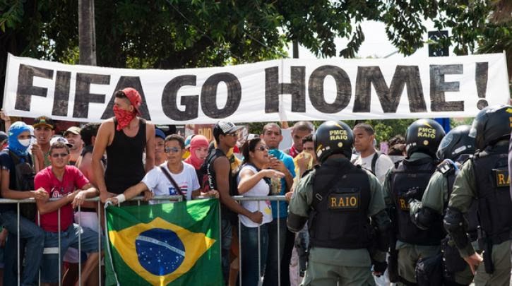 Με φόντο το Μουντιάλ λοιπόν πραγματοποιήθηκε τεράστια αύξηση της τιμής των εισιτηρίων των λεωφορείων κάτι που προκάλεσε μαζικές διαδηλώσεις με σφοδρές συγκρούσεις σε όλη τη Βραζιλία τον Ιούνιο του 2013, που εξελίχθηκαν σε ένα κίνημα εναντίον της διαφθοράς και των υποβαθμισμένων δημόσιων υπηρεσιών την ίδια ώρα που η κυβέρνηση δαπανά τεράστια ποσά για τη διοργάνωση του Μουντιάλ του 2014. Οι βραζιλιανικές δυνάμεις καταστολής προέβησαν σε 78 συλλήψεις ενώ ένας άνθρωπος έχασε τη ζώη του κατά τη διάρκεια της κοινωνικής έκρηξης που διήρκησε περισσότερες από δέκα μέρες.